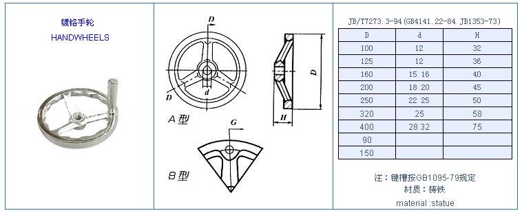 名稱:鍍鉻手輪 材料:鑄鐵 外觀:光亮,鍍鉻 標準:JB/T7273.3-94